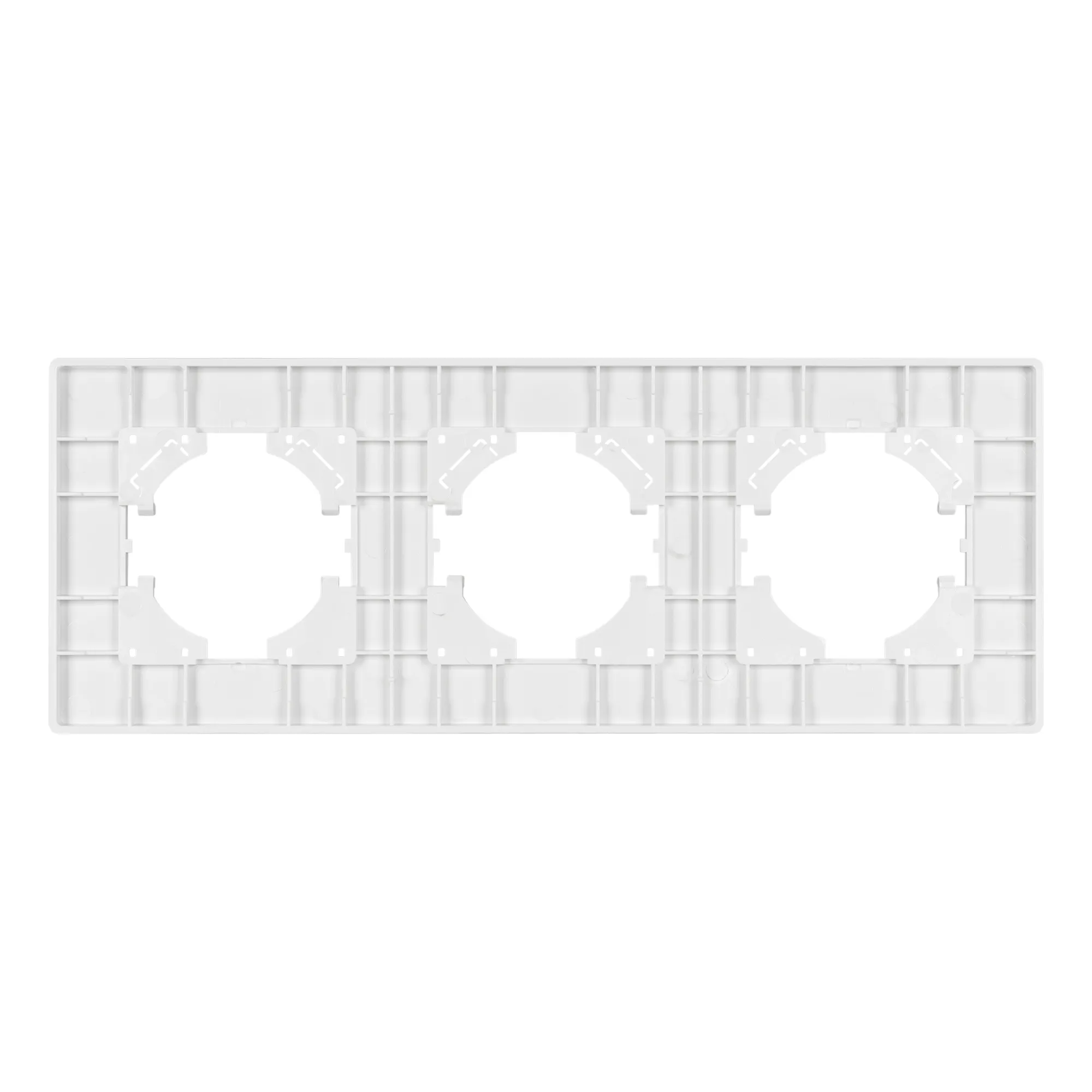 Рамка пластиковая на 3 поста, под встраиваемый механизм. Цвет - черный. Среднего уровня герметичности IP20. Ориентация монтажа - горизонтальная (основным ориентиром служат посадочные выступы для накладки механизма).