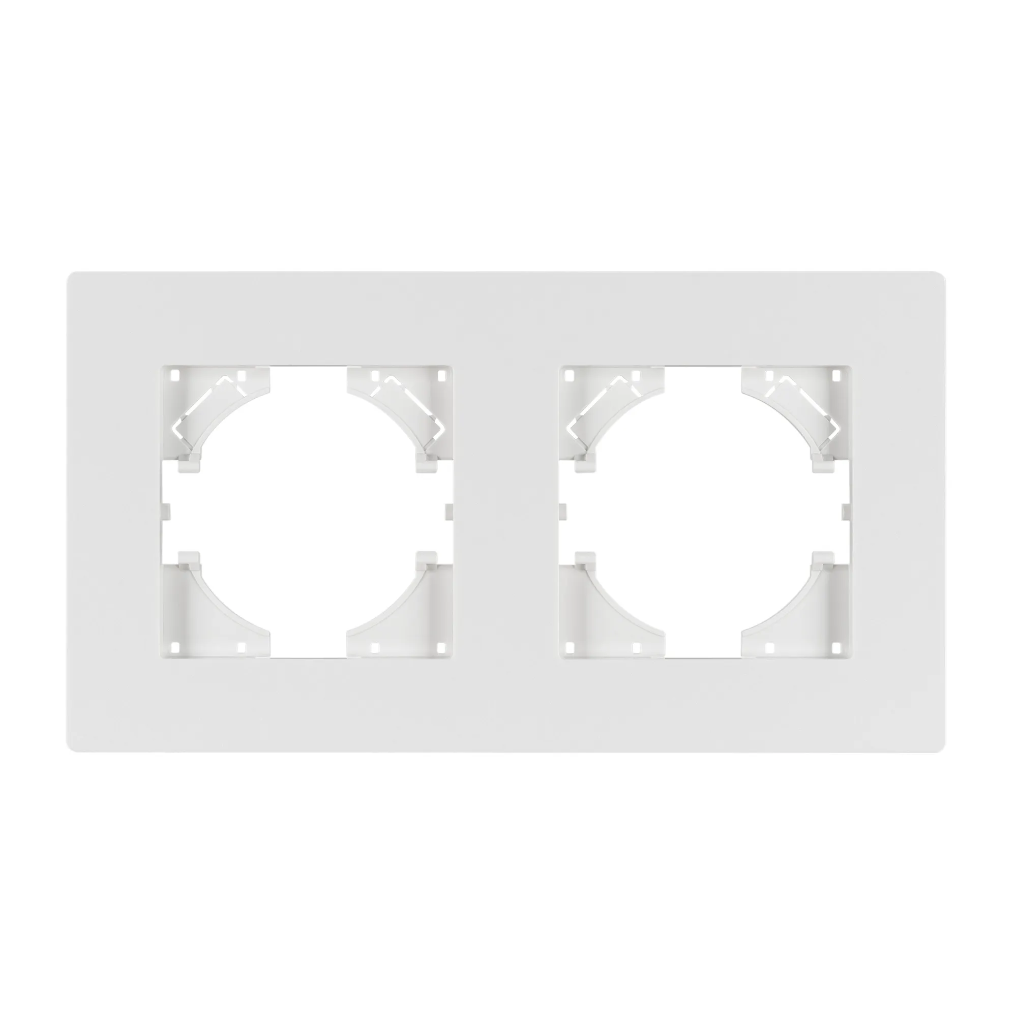Рамка пластиковая на 2 поста, под встраиваемый механизм. Цвет - белый. Среднего уровня герметичности IP20. Ориентация монтажа - горизонтальная (основным ориентиром служат посадочные выступы для накладки механизма).