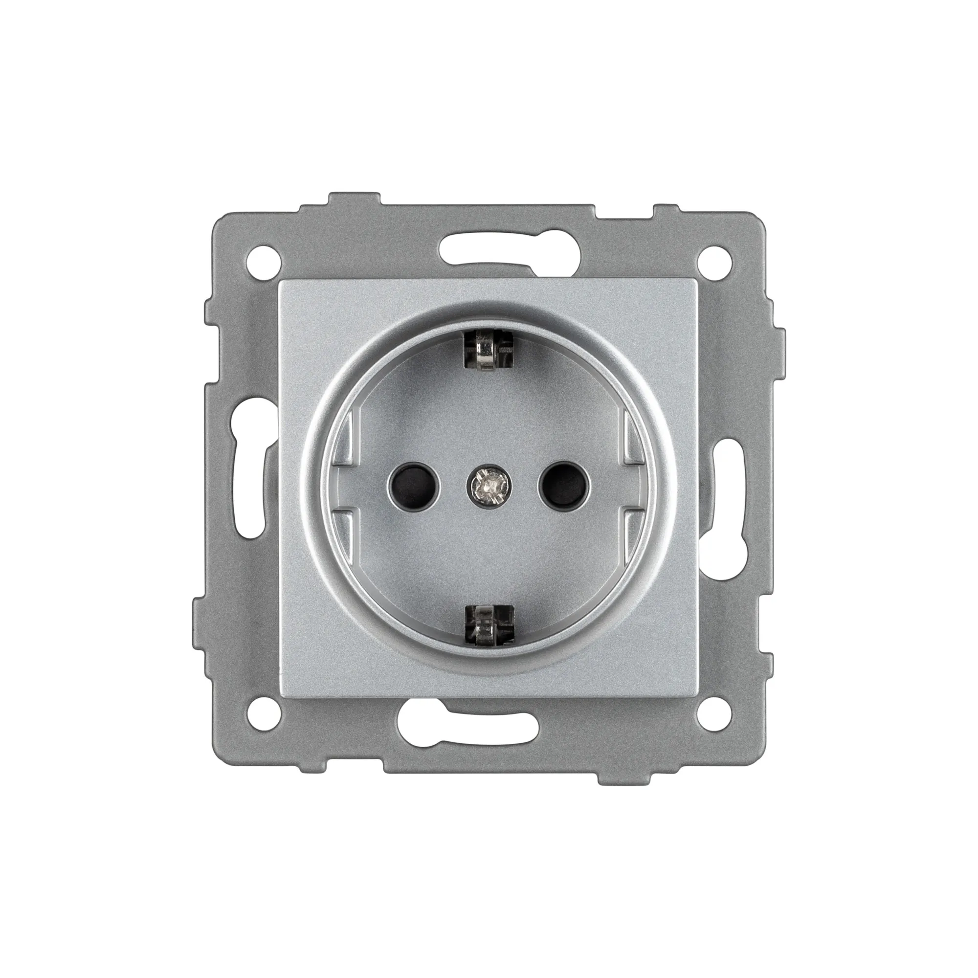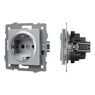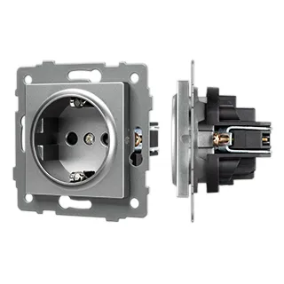 Механизм розетки с заземлением на 1 пост. Цвет - серый. Без фронтальной рамки. Уровень пылевлагозащиты IP20. Устанавливается в стандартный подрозетник.