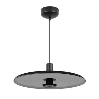 Подвесной светильник. Мощность 12 Вт, св. поток 597 лм, 49 лм/Вт, теплый 2700 K, CRI>94, угол 36°, напряжение питания 230 В. Темно-серый фигурный корпус из переработанного фетра с светло-серой внутренней поверхностью, линза-рассеиватель из PMMA, степень защиты IP20. Размер: диаметр 350 мм, высота 145 мм. Монтаж подвесной, длина подвеса 2000 мм, регулируемая. В комплекте 2 вида чаш. Габариты чаши (встраиваемая) Ø80 х 23 мм, врезное отверстие Ø60 мм. Габариты чаши (накладная) Ø120 x 35 мм. Драйвер 59 В, 300 мА, пульсация <1%. Управление по TRIAC.