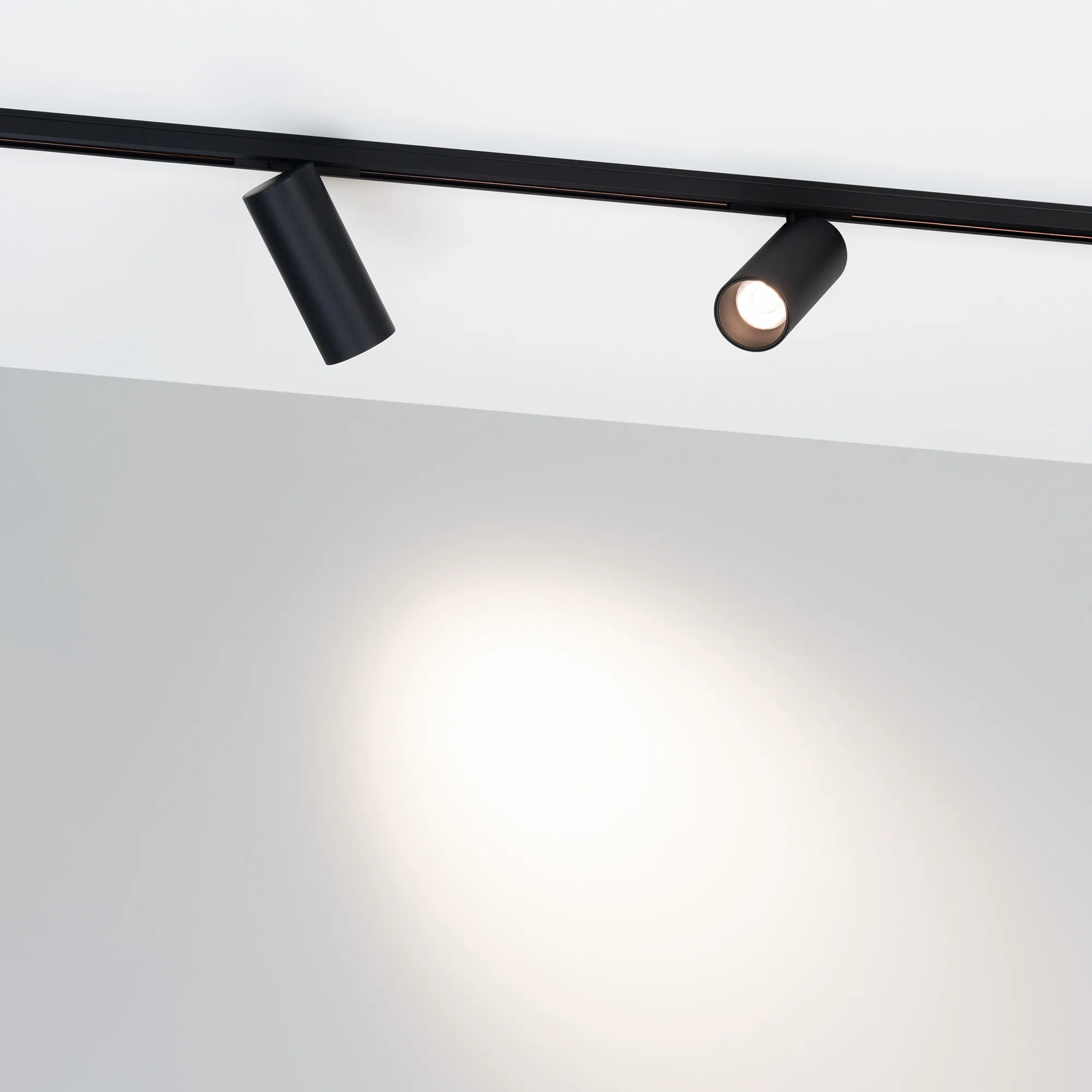 Светильник для магнитных треков MAG-MICROCOSM шириной 11 мм. Мощность 5 Вт, св. поток 373 лм, 75 лм/Вт, ТЕПЛЫЙ 2700 K, CRI>90, угол 36°, напряжение питания 24 В. Черный фигурный корпус из алюминия, экран поликарбонат, степень защиты IP20. Размер: диаметр 35 мм, высота 58 мм. Монтаж на трек MICROCOSM. Пульсация <1%. Не диммируется. Преобразователь напряжения DC-DC.