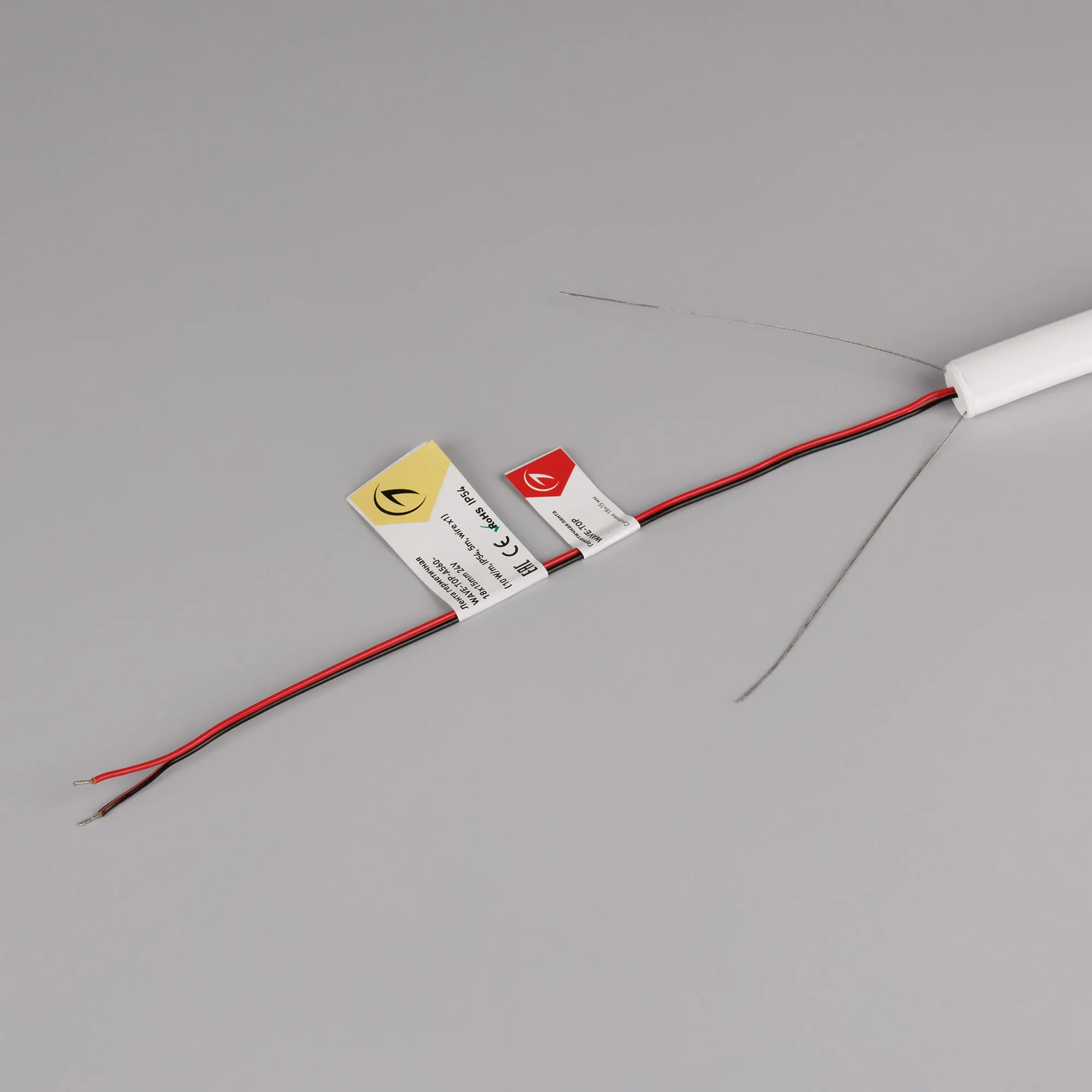 Гибкая герметичная лента (неон серии WAVE), сечение 18×15 мм с тросом-натяжителем. Светодиоды SMD2835 560 шт/м. Цвет свечения ТЕПЛЫЙ БЕЛЫЙ (3000 К), индекс цветопередачи CRI>90, световой поток 466 лм/м, угол излучения 360°. Мощность 10 Вт/м, питание 24 В. Класс пылевлагозащиты IP54. Размеры 5000×18×15 мм. Мин. отрезок 25 мм. Изгиб согласно метки на корпусе, минимальный радиус изгиба 150 мм. Кабель питания длиной 500 мм, вывод с одной стороны вдоль линии сечения неона. Катушка 5 м. Цена за 1 м. Гарантия 3 года.