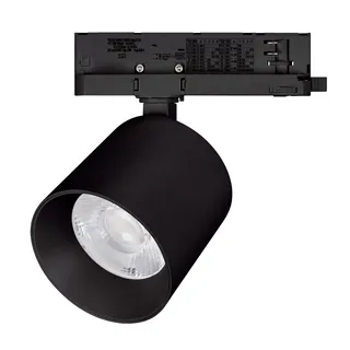 Светильник для трехфазных треков, 36 Вт с управлением DALI. Цвет свечения ДНЕВНОЙ 4000K, световой поток 3200 лм, угол 50°, CRI>90. Корпус круглый, металл, цвет черный, IP20. Размеры Ø100x93 мм. Входное напряжение AC220-240V. Драйвер встроенный 10-40В (850-1050 мА), 50/60Гц, максимальная мощность 42W.