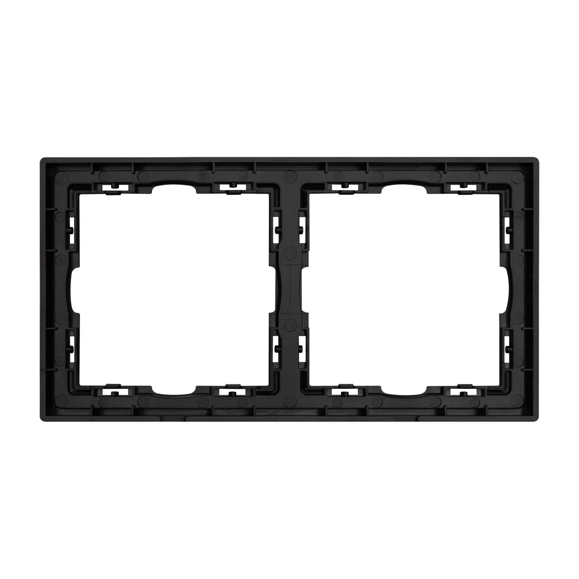 Рамка пластиковая на 2 поста, под встраиваемый механизм. Цвет - черный, с Soft-Touch покрытием. Среднего уровня герметичности IP20. Ориентация монтажа горизонтальная.