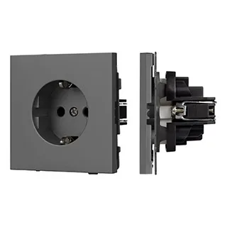 Механизм розетки с заземлением на 1 пост. Цвет - серый, с Soft-Touch покрытием. Без фронтальной рамки. Уровень пылевлагозащиты IP20. Розетка устанавливается в стандартный подрозетник круглого сечения диаметром 60мм.