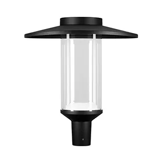 Поставка под заказ от 5 шт. Венчающий светодиодный светильник. Мощность 50 Вт, св. поток 6330 лм, 129 лм/Вт, тёплый 2700 K, CRI>80, угол 150х30°, напряжение питания 230 В. Черный корпус из алюминия, экран закаленное стекло, степень защиты IP65. Размер: диаметр 550 мм, высота 640 мм. Монтаж на вертикальную опору диаметром 76 мм.