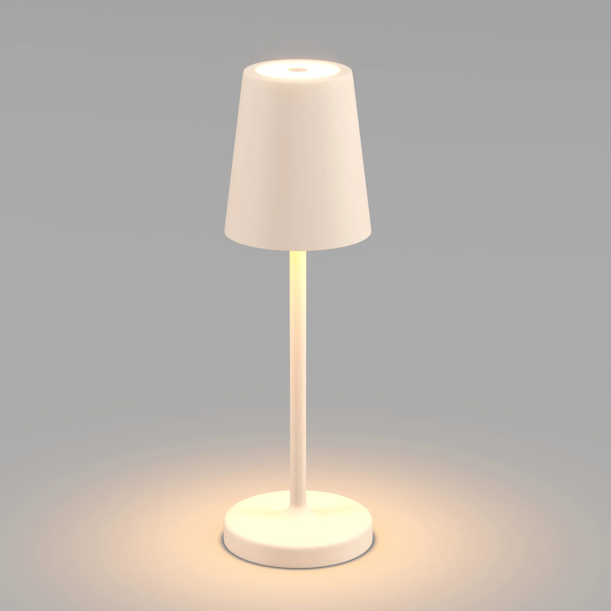 Настольный светильник со встроенным аккумулятором 1.5Вт, алюминиевый корпус, цвет песочный. Цвет ТЕПЛЫЙ БЕЛЫЙ 2200-2700-3000K, св.поток 110-130 лм, CRI(Ra)>80, угол 90°. Размер Ф75x250мм. IP54. Зарядка от сети переменного тока AC220-240V. Тип встроенного аккумулятора 1500мАч Li-ion, напряжение батареи 3.7V