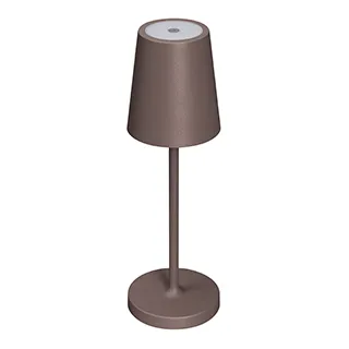 Настольный светильник со встроенным аккумулятором 1.5Вт, алюминиевый корпус, цвет терракотовый. Цвет ТЕПЛЫЙ БЕЛЫЙ 2200-2700-3000K, св.поток 110-130 лм, CRI(Ra)>80, угол 90°. Размер Ф75x250мм. IP54. Зарядка от сети переменного тока AC220-240V. Тип встроенного аккумулятора 1500мАч Li-ion, напряжение батареи 3.7V