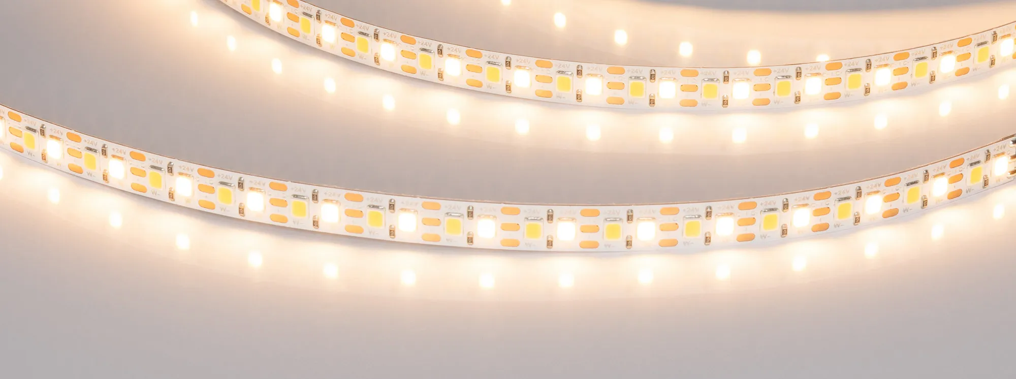 Светодиодная гибкая лента UL-A168, открытая IP20, кратность резки 2 светодиода. Светодиоды 2835, 168 шт/м (840 шт на 5 м), белая плата 8 мм, скотч 3M. Цвет MIX ТЕПЛЫЙ 2700K + БЕЛЫЙ 6000K, цветопередача CRI>90 , угол 120°. Питание 24V, мощность 18 Вт/м (90 Вт на 5 м). Размеры 5000x8x1.2 мм. Мин.отрезок 11,9 мм, 2 светодиод. Цена за 1м.