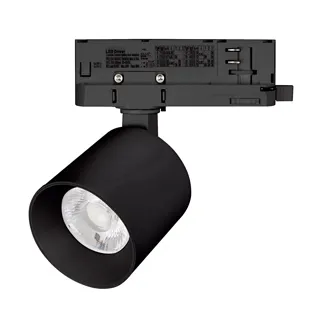 Светильник для трехфазных треков, 16 Вт с управлением TRIAC. Цвет свечения ТЁПЛЫЙ 3000K, световой поток 1550 лм, угол 50°, CRI>90. Корпус круглый, металл, цвет черный, IP20. Размеры Ø74x69,6 мм. Входное напряжение AC220-240V. Драйвер встроенный 9-40В (200 - 550мА), 50/60Гц, максимальная мощность 22W.