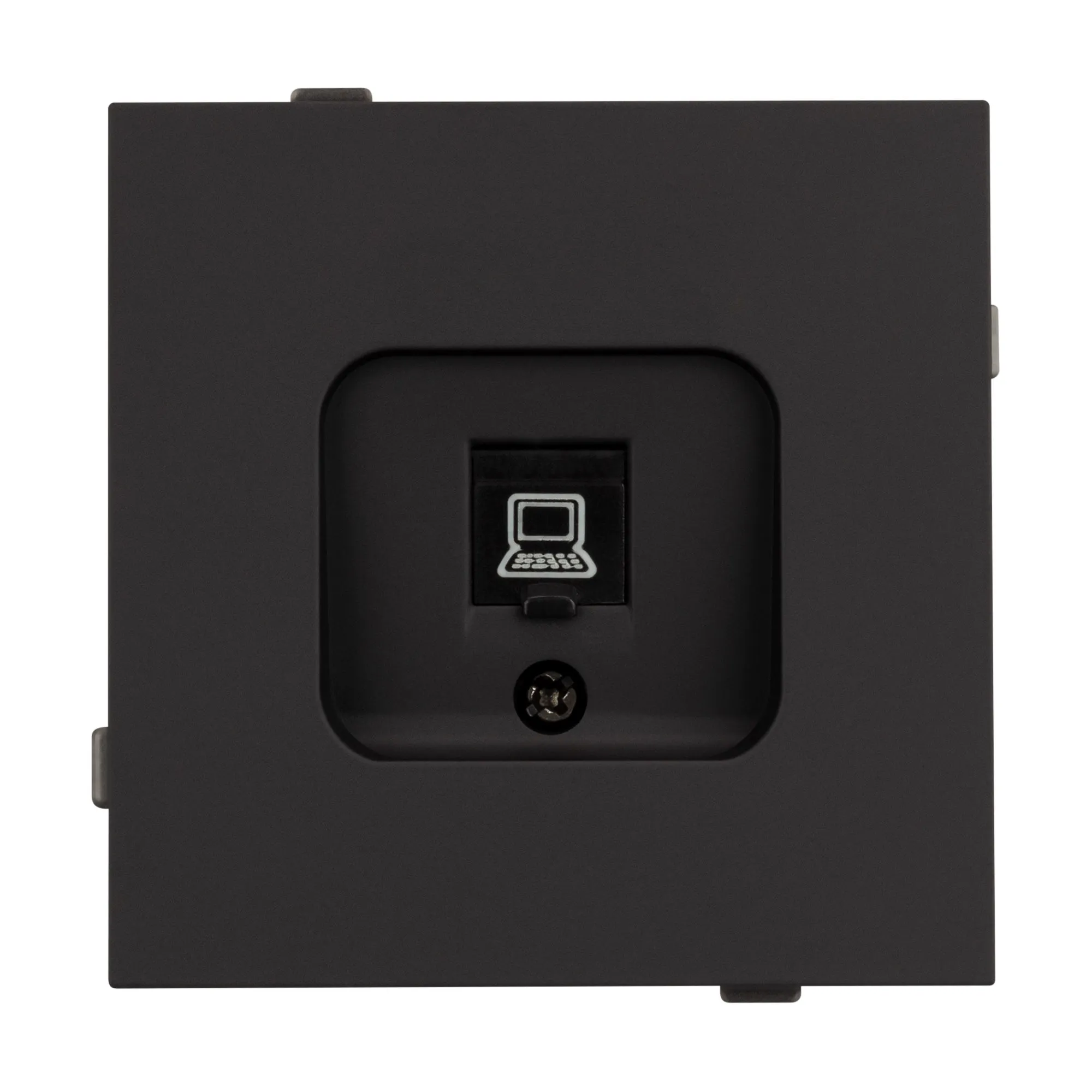 Механизм компьютерной розетки на 1 пост 6-й категории. Цвет - черный, с Soft-Touch покрытием. Без фронтальной рамки. Уровень пылевлагозащиты IP20. Розетка устанавливается в стандартный подрозетник круглого сечения диаметром 60мм.