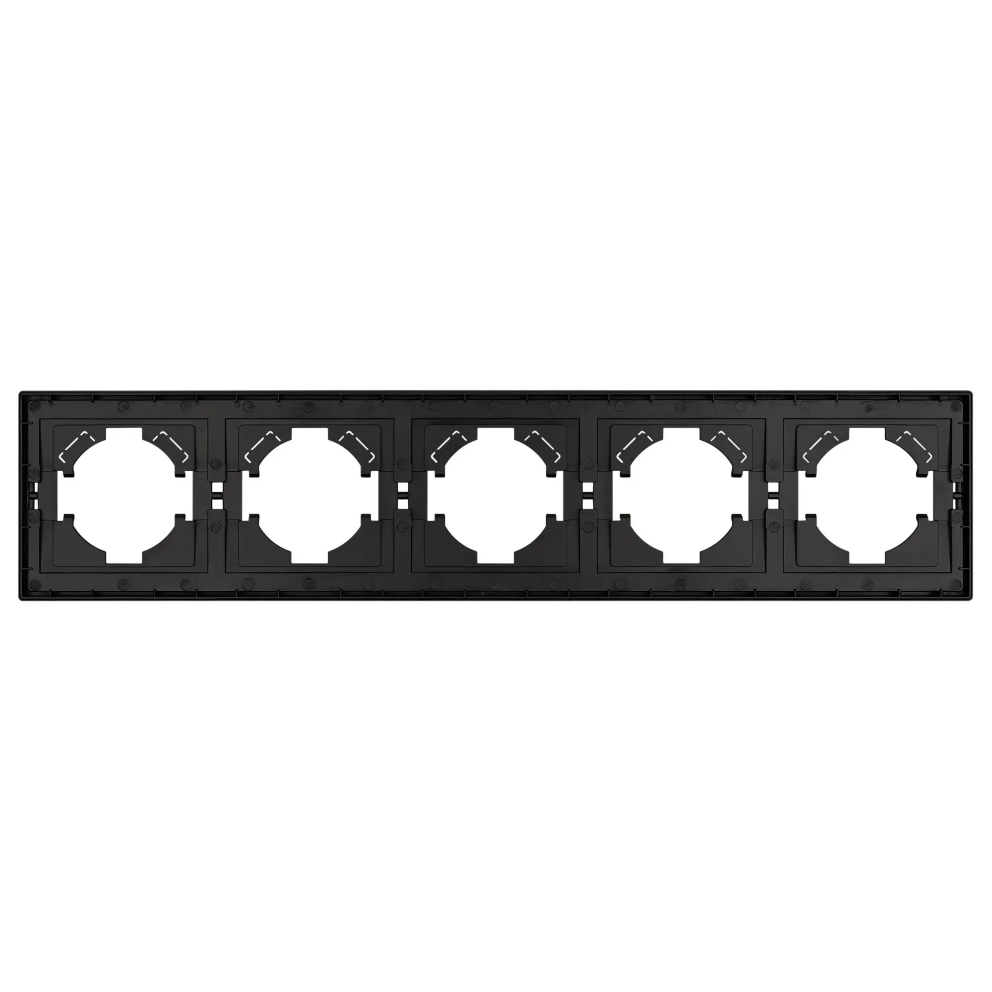 Рамка пластиковая на 5 постов, под встраиваемый механизм. Цвет - серый, с Soft-Touch покрытием. Среднего уровня герметичности IP20. Ориентация монтажа горизонтальная.