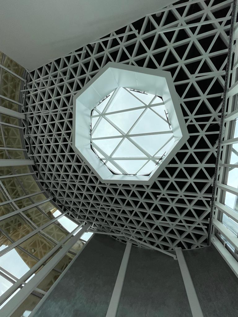 Важную роль в оформлении комплекса играют световые элементы. Светодиодные RGBW-прожекторы  были установлены внутри стеклянных конструкций входного павильона музейного комплекса.  За счет этого в темное время суток создается динамический эффект заливки помещения светом.