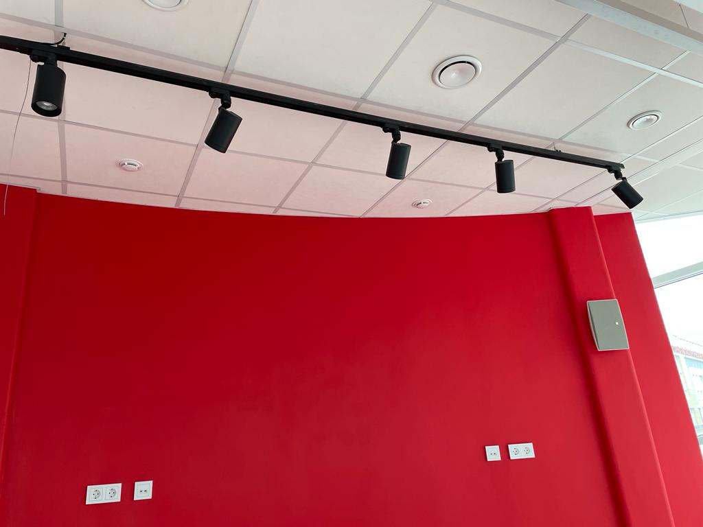 В качестве основного освещения использованы линейные светильники SP-LINE дневного белого оттенка (4000 К). Аварийное освещение было реализовано при помощи блоков питания  ARJ-EMG и светильников IM-RONDO-EMERGENCY.