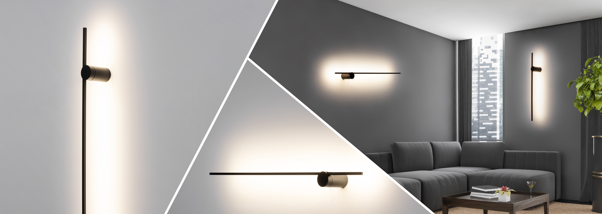 Черные и белые фигурные корпуса длиной 600 или 900 мм легко вращаются на 355° относительно основания.