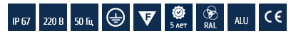 Степень защиты от пыли и влаги – IP67.