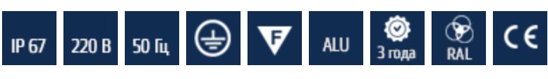 Источник питания расположен внутри корпуса. Степень защиты от пыли и влаги – IP67. Алюминиевое исполнение корпуса исключает вероятность образования коррозии, а его конструкция обеспечивает эффективное теплоотведение от светодиодных источников света.