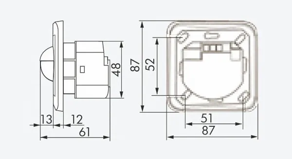 - Габариты Д 87 x Ш 87 x В 61 мм