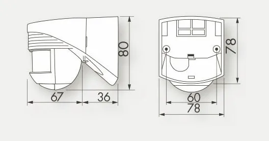 - Порог освещенности и время отключения регулируются с помощью потенциометра на нижней поверхности датчика