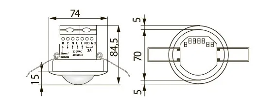 - Потолочный датчик движения, с круговым диапазоном обнаружения, скрытый монтаж в подвесной потолок