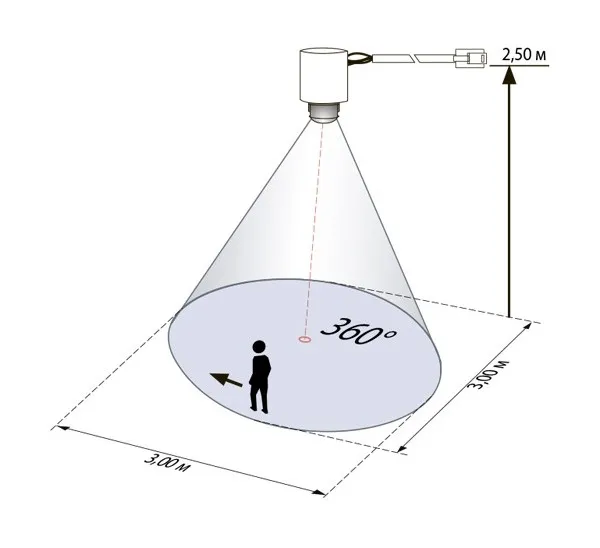 • Диапазон обнаружения 360°