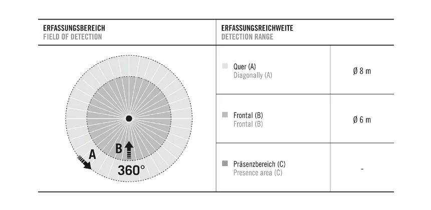 | диапазоном обнаружения Фронтально | Ø 6 m |
