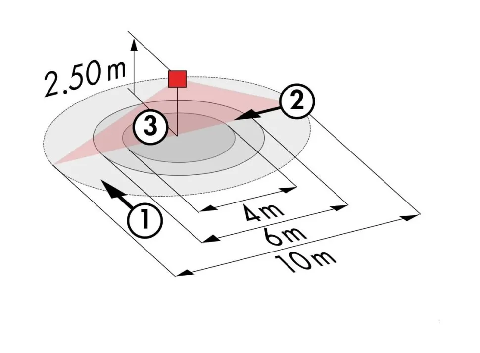 • Дальность действия перпендикулярно макс. Ø 10 м