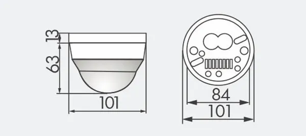 • Дистанционно управляемый потолочный датчик присутствия PD4-M-2C-DUO в исполнении ведущего (Master) устройства для открытого монтажа, для двух отдельных групп освещения, с круговым диапазоном обнаружения и дальностью действия около 24 м.