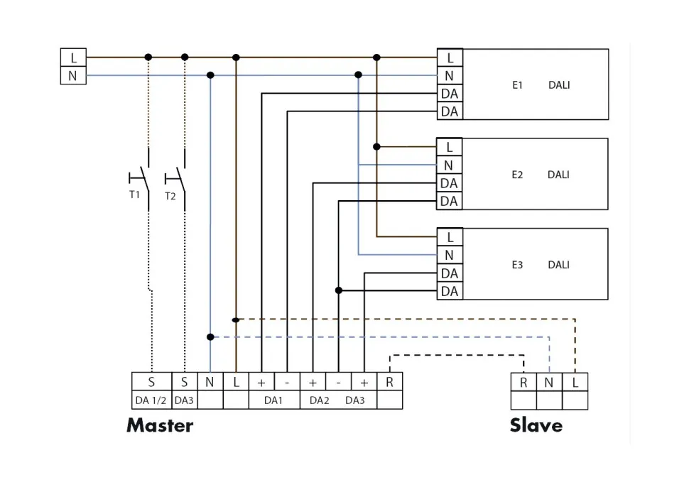 • Задающее устройство DALI/DSI макс. 25 ЭПРА