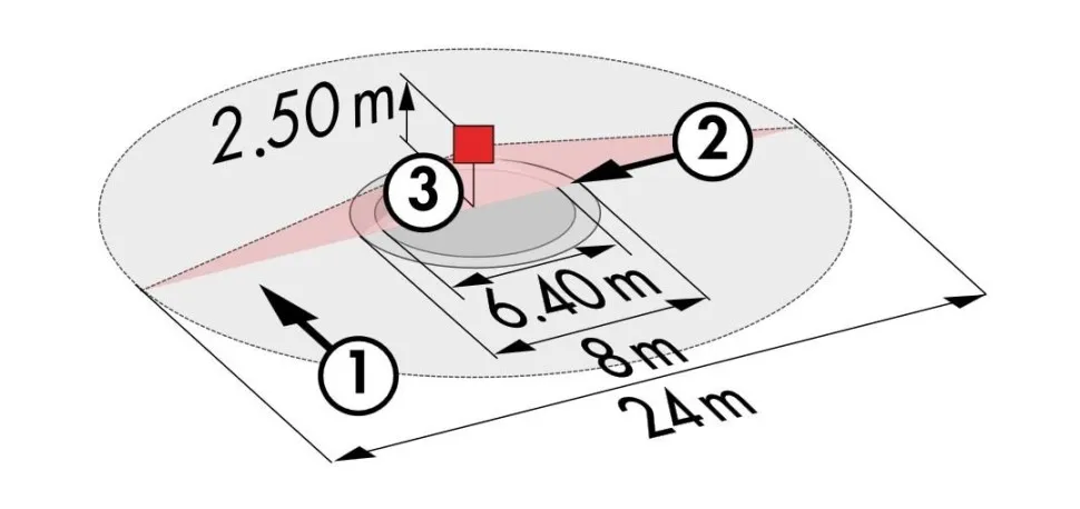• Дальность действия перпендикулярно макс. Ø 24 м