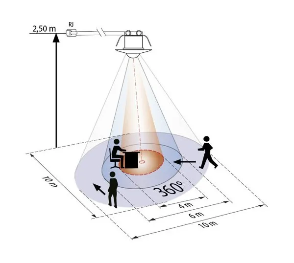 • Дистанционно управляемый потолочный мини датчик присутствия PD9-M-2C для внутреннего применения, в исполнении ведущего (Master) устройства, с круговым диапазоном обнаружения.