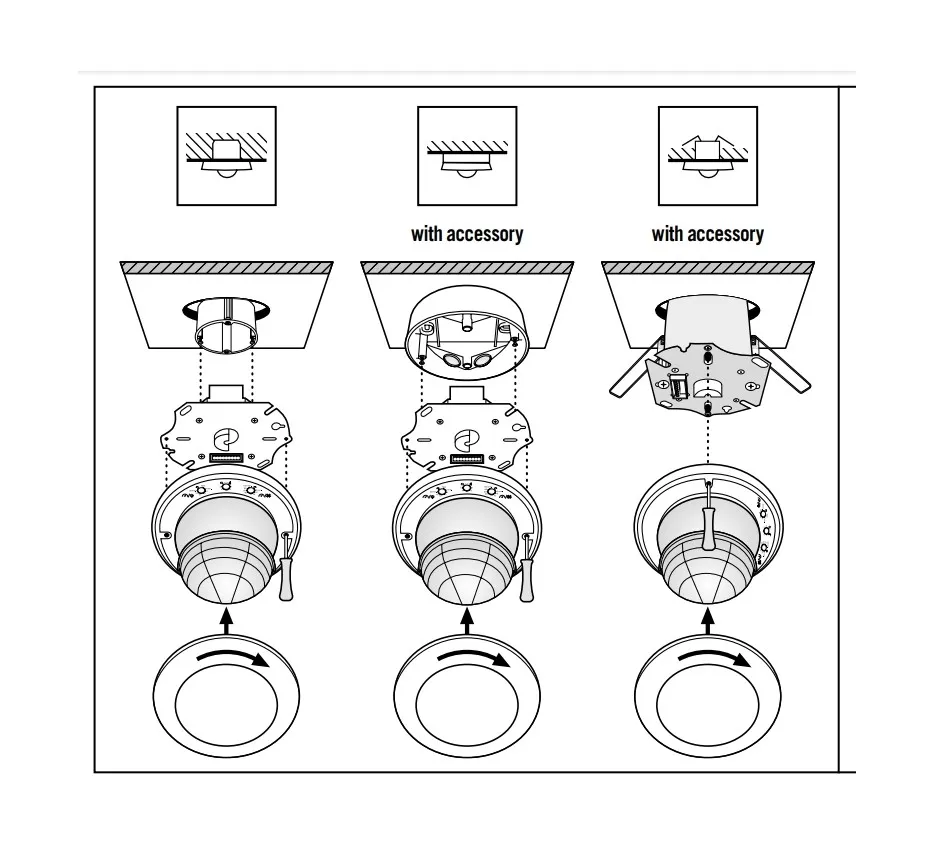 • Накладной монтаж и встроенный потолочный монтаж при использовании аксессуаров
