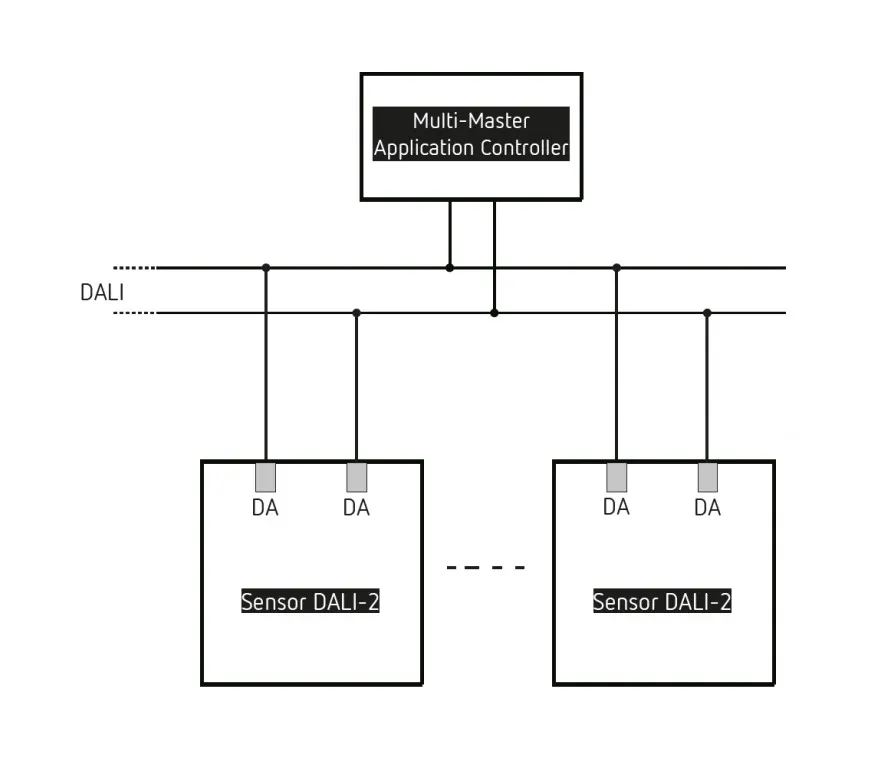 - Для ввода в эксплуатацию / управления и настройки требуется прикладной контроллер с несколькими ведущими устройствами. Согласно IEC 62386, он должен поддерживать части 101/103 и, возможно, 301/303/304.
