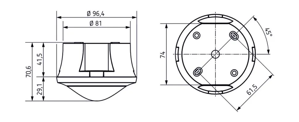 - Круговая зона обнаружения 360°, до Ø 8 м (50 м 2 ) при монтажной высоте 3 м