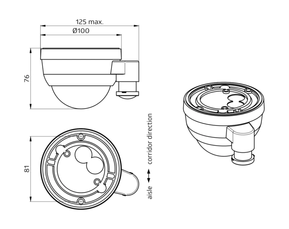 - Мультисенсор DALI для поверхностного монтажа на большой высоте