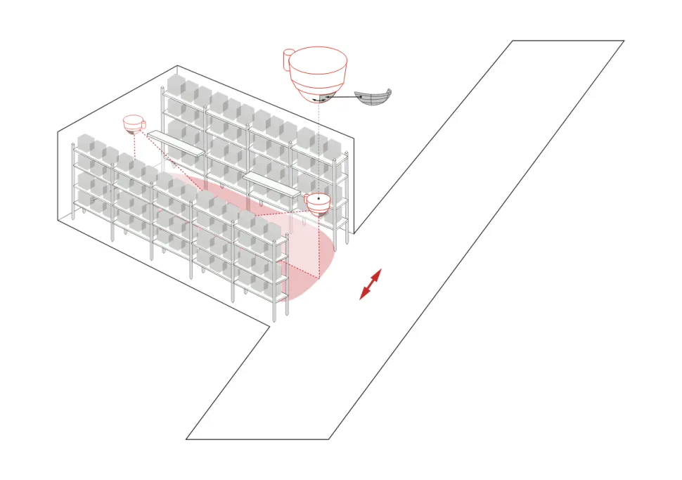 - При использовании на многоярусных складах следует позаботиться о том, чтобы в поперечных проходах склада были установлены датчики, способные обнаруживать движение только в нужных местах прохода с помощью жалюзи или других технических устройств.