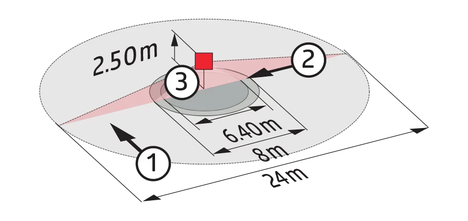Контролируемая зона (тангенциальное движение): 450 м² / 2,5 м монтажной высоты