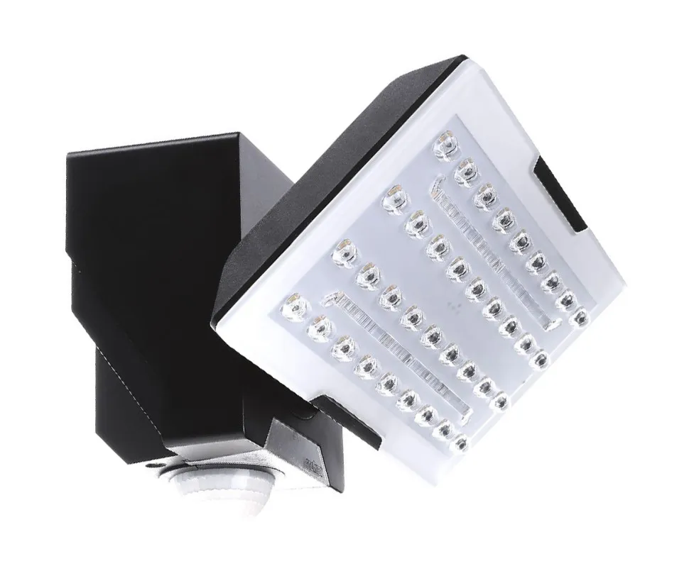 Новый широкий прожектор. Точность широкоформатного освещения. Благодаря матрице линз, разработанной STEINEL, и полностью поворачивающейся плоской световой головке можно добиться идеального освещения вдоль зданий или особенно больших площадей. Мощные светодиоды высшего класса создают впечатляющую яркость 2400 лм при потреблении всего 24,8 Вт. Встроенные светодиоды базового освещения обеспечивают ориентацию и безопасность при минимальном потреблении энергии. Датчик имеет угол обнаружения 240° и дальность действия 12 м. Версия ведомого устройства (SLAVE), которая предлагается отдельно, может быть легко подключена к прожектору с помощью кабеля.