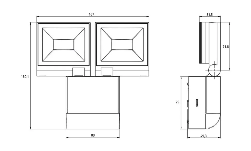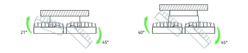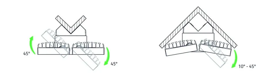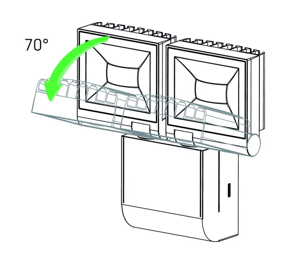 - Прожектор может быть повёрнут на ± 20° в горизонтальной плоскости и на 70° вниз.