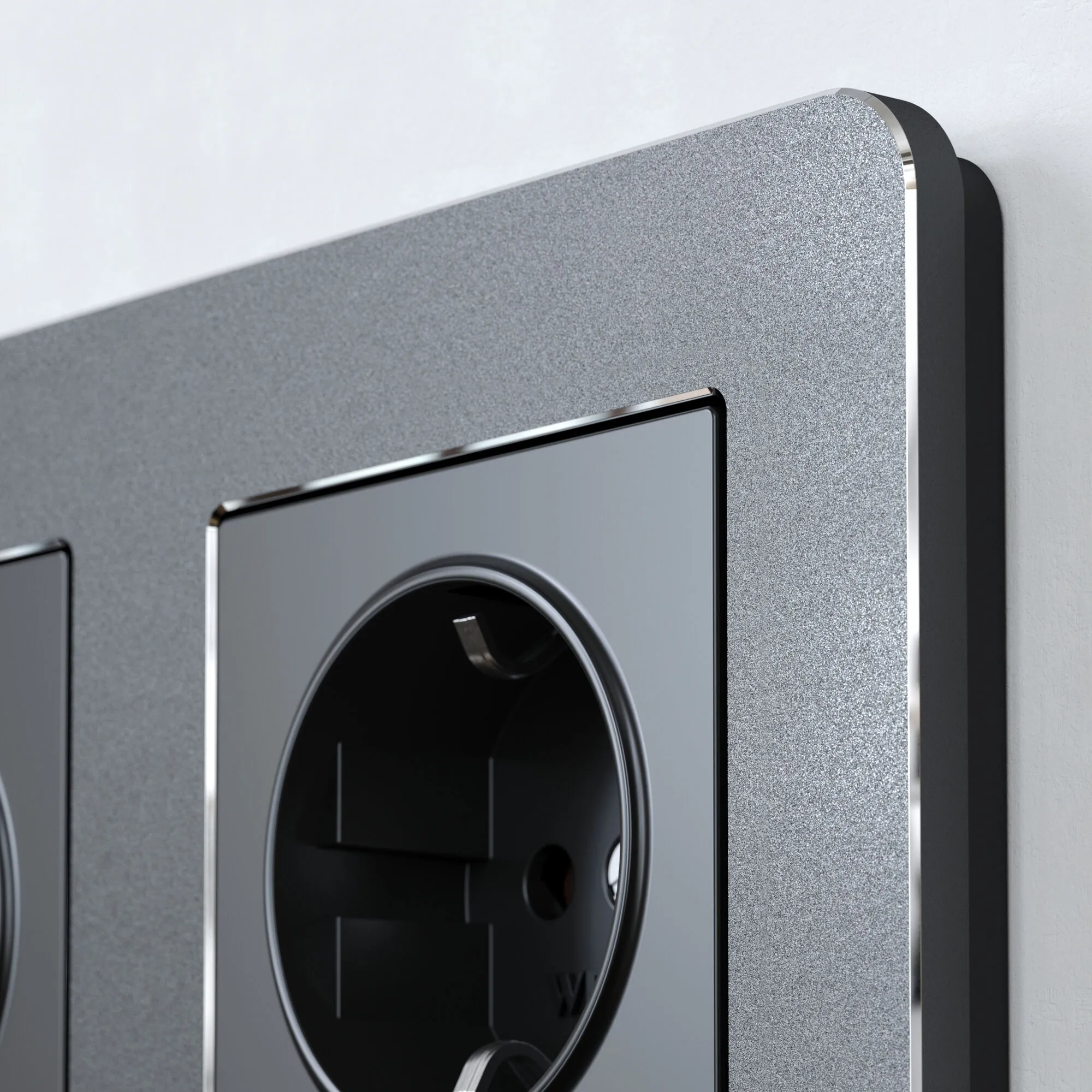 Platinum — коллекция рамок из литого анодированного алюминия. Сатиновая поверхность с шероховатой фактурой и изящные акцентные фаски на гранях создают премиальный дизайн, который подчеркивается благодаря увеличенным размерам рамки — 95×95 мм.