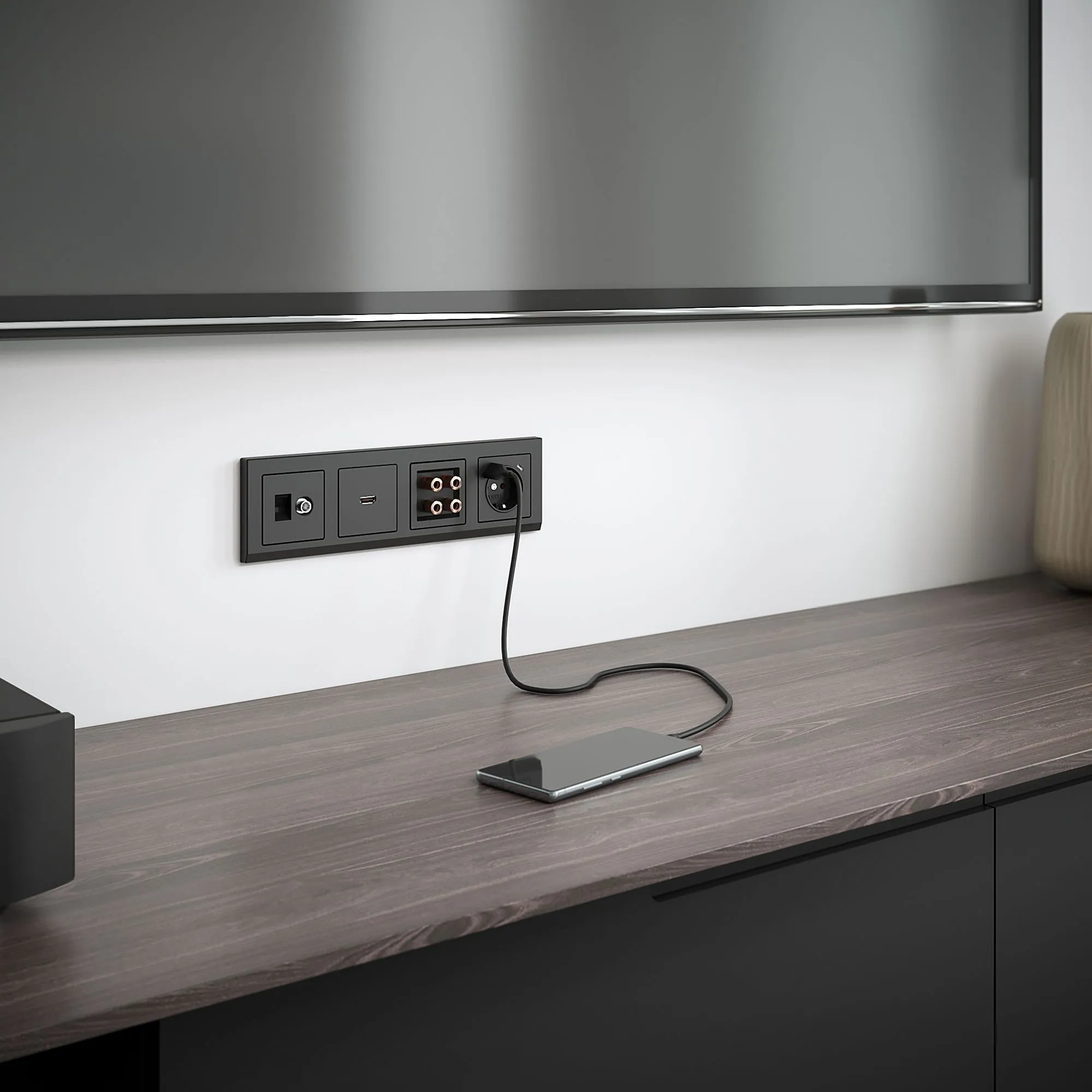 Серия Stark представлена моделями от одного до пяти постов, а также рамкой для двойной розетки. Коллекция совместима с любыми встраиваемыми механизмами Werkel.