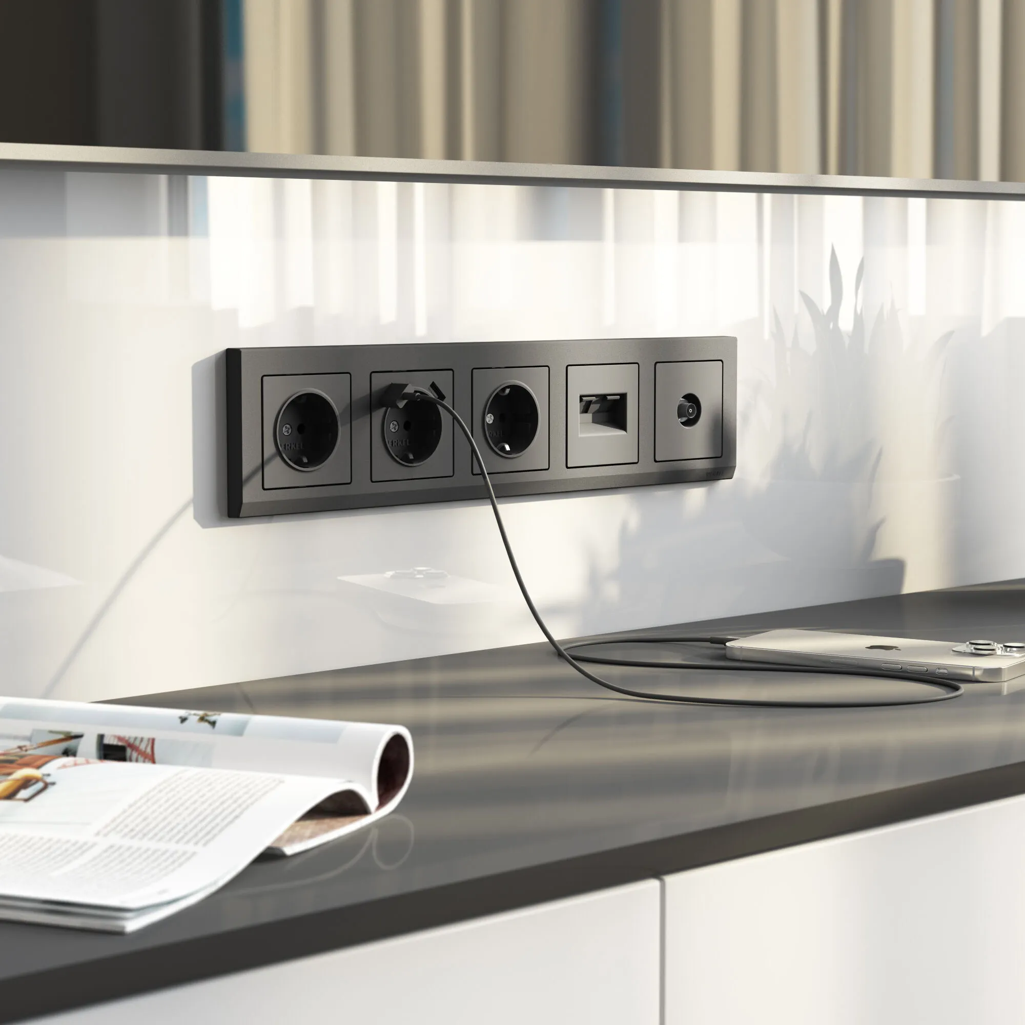 Серия Stark представлена моделями от одного до пяти постов, а также рамкой для двойной розетки. Коллекция совместима с любыми встраиваемыми механизмами Werkel.
