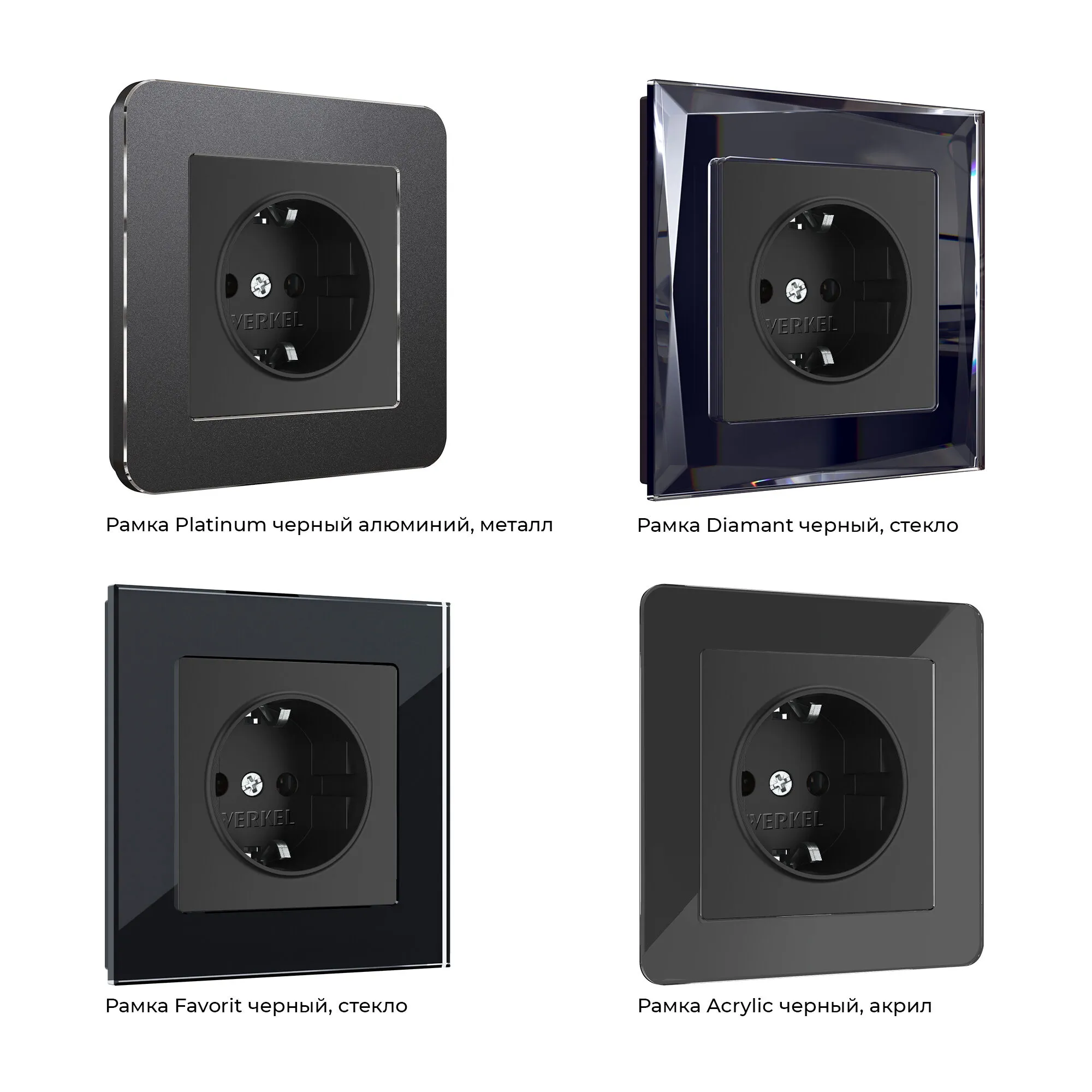 Розетка с заземлением и шторками (черный матовый) W1171108