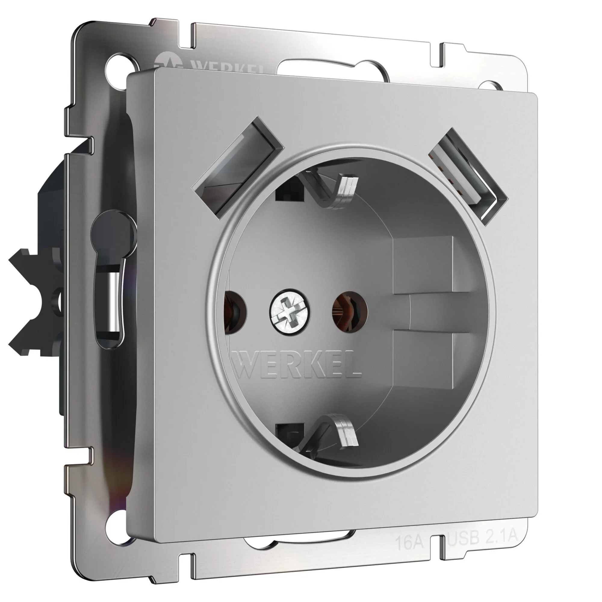 Розетка с заземлением, шторками и USBх2 (серебряный) W1171506