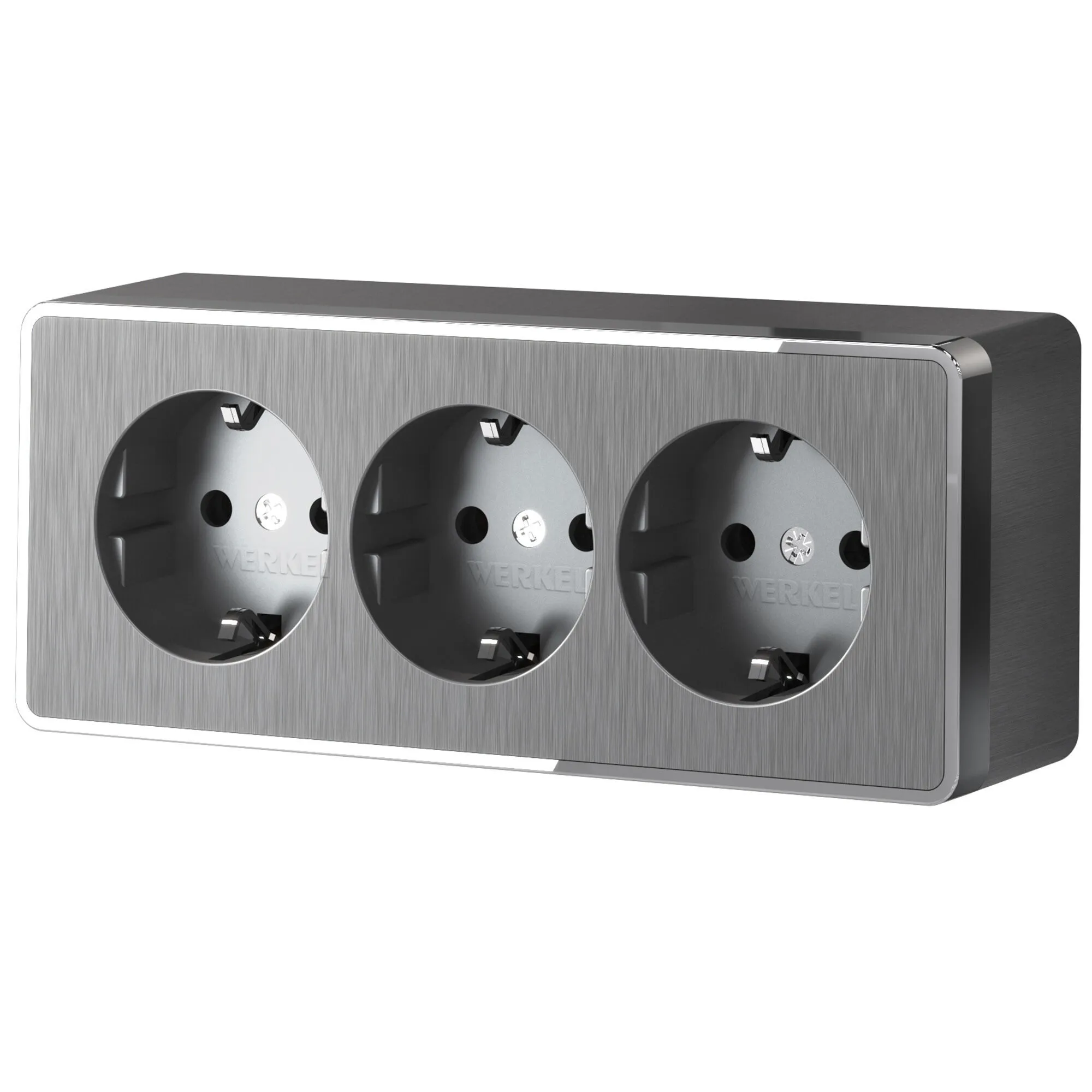 Розетка тройная с заземлением и шторками Gallant (графит рифленый) W5073104