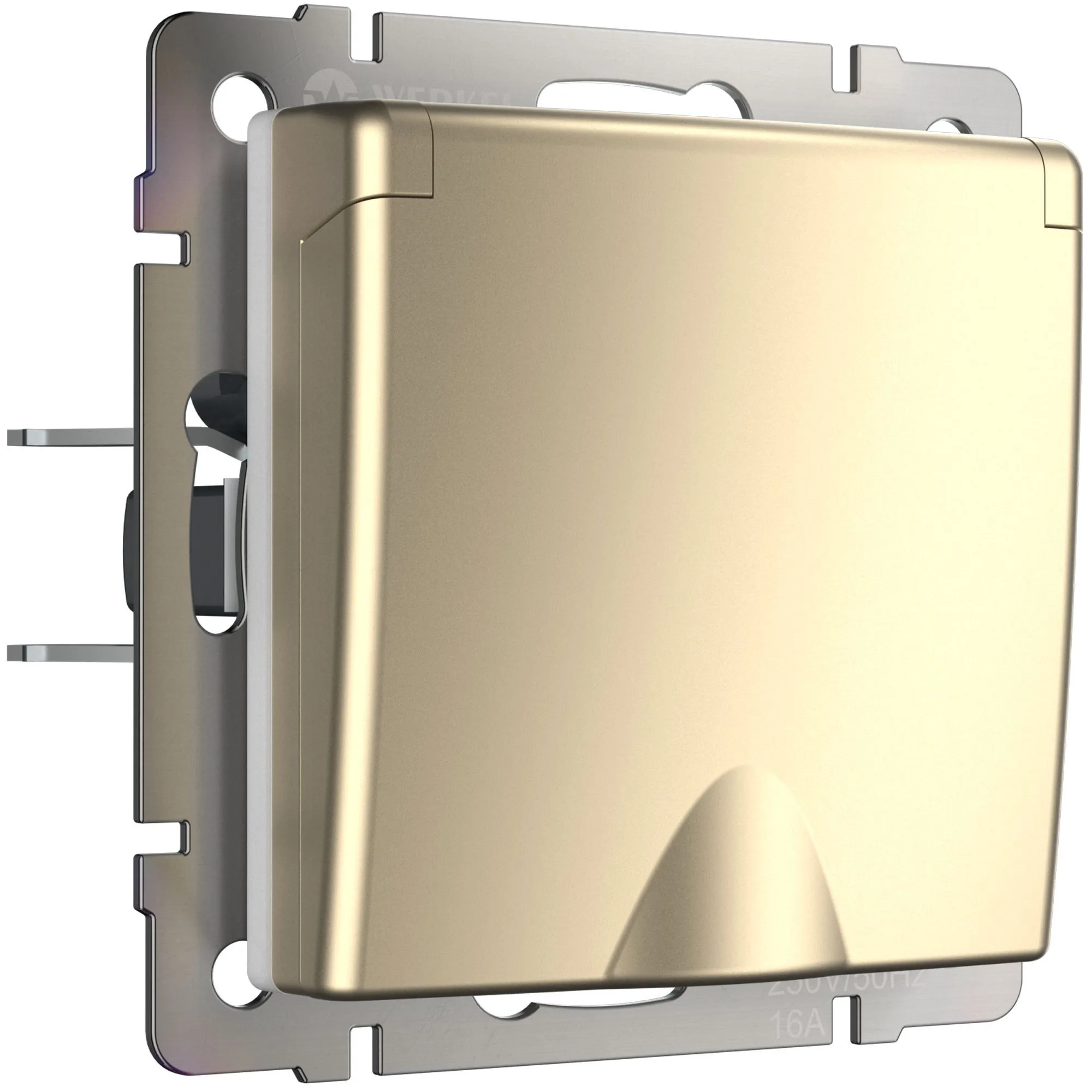 Розетка влагозащ. с зазем. с защит. крышкой и шторками (шампань) W1171211