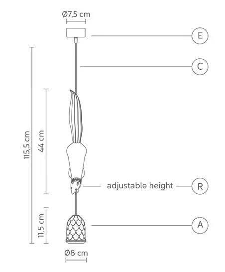 Размер Белки - 8 X 9 X 44 Cm, Размер Патрона D 9 X 11 Cm, Высота Подвеса Регулируется