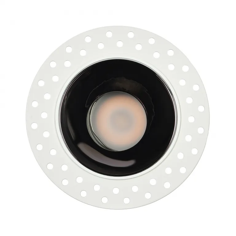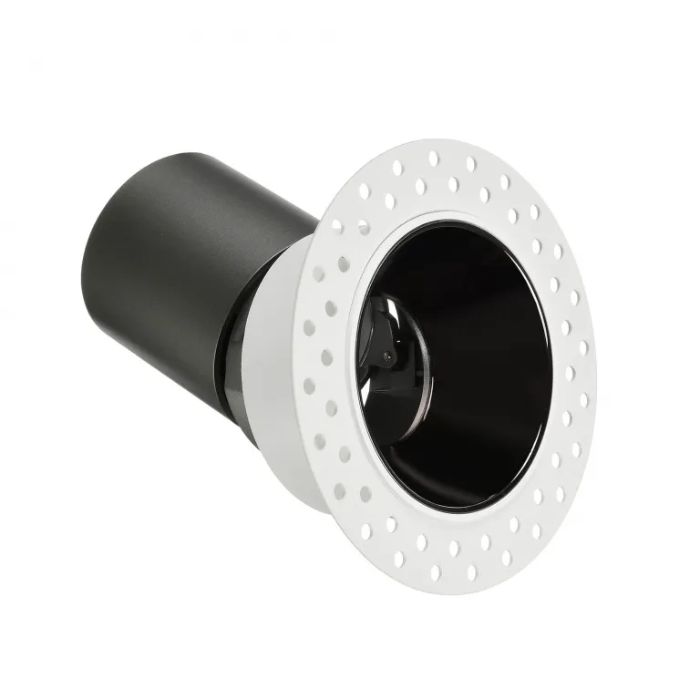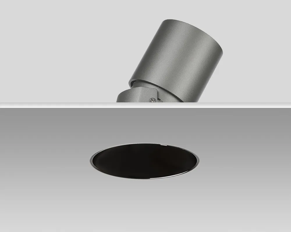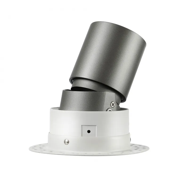 Безрамочный встраиваемый акцентный светодиодный светильник круглого сечения с функцией регулировки угла светового потока от 0° до 25° для монтажа под штукатурку.