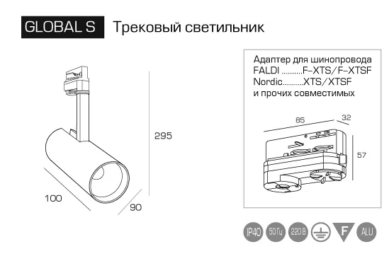 Трековый светодиодный светильник GLOBAL S для трехфазного шинопровода
