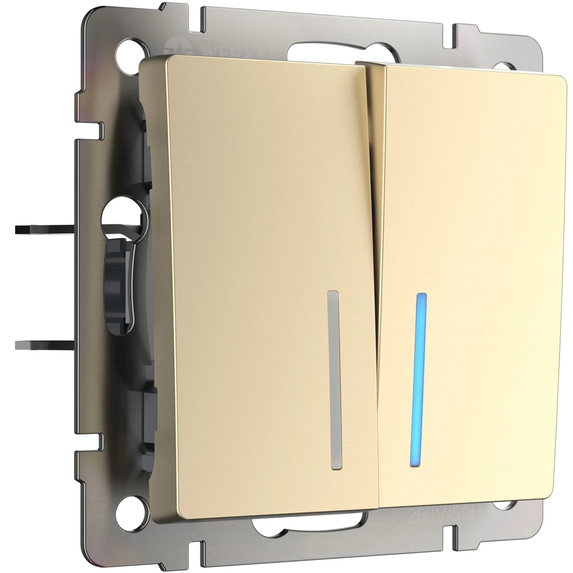 Выключатель двухклавишный с подсветкой (шампань) W1120111